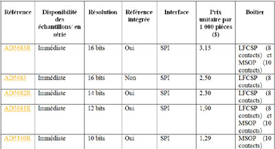 Principales caractéristiques des convertisseurs 16 bit nanoDAC+ AD5683R :