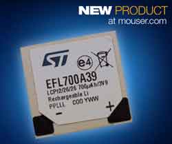 Avec leurs dimensions de 25,7 x 25,7 mm, ces batteries ont un encombrement proche de celui d’un timbre, et une épaisseur comparable, de seulement 0,22 mm. La tension nominale est de 3,9 V et la capacité de 0,7 mAh. Cette batterie peut assurer un courant pulsé maximal en charge de 10 mA.
