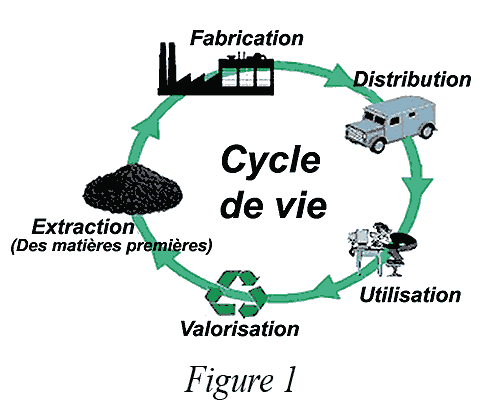Toutes les phases de la vie du produit doivent être prises en compte, depuis l’extraction des matériaux utilisés et jusqu’à la fin de vie du produit (ex : recyclage) (cf. figure 1).