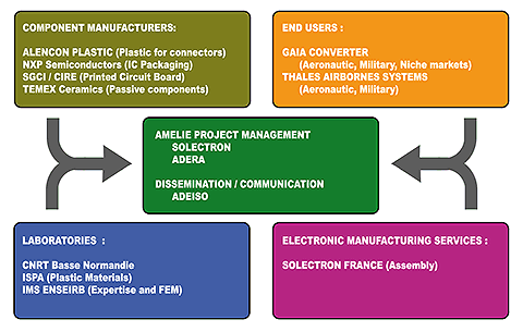 C’est dans ce contexte que des acteurs de l’assemblage électronique pour des équipements destinés à des applications militaires, aéronautiques ou spatiales, bénéficiant d’une dérogation jusqu’en 2010 pour l’application de la directive européenne RoHS, se sont regroupés dans le consortium AMELIE, pour anticiper les problèmes de la fiabilité que soulève sa mise en oeuvre ; ce projet constituera donc un premier élément de réponse.