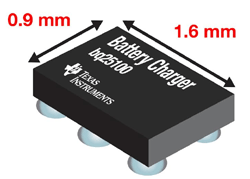 Monté en boîtier WCSP de 0,9 x 1,6 mm, le nouveau chargeur Li-Ion mono-élément bq25100 permet de diviser de moitié la taille des chargeurs existants. Ce composant accepte des tensions d’entrée pouvant atteindre 30 V et contrôle avec précision des courants de charge rapide compris entre 10 mA minimum et 250 mA maximum, avec coupure de charge haute précision de seulement 1 mA pour assurer la compatibilité avec les mini-piles bouton Li-Ion. Le chargeur bq25100 supporte également un courant de fuite inférieur à 75 nA pour prolonger le fonctionnement en mode veille.