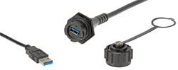 Les connecteurs industriels USB 3.0 pour montage sur panneau, compatibles « USB 3.0/2.0 », ainsi que les câbles de Molex allient une construction solide et des éléments de protection. L’ensemble connecteur USB 3.0 avec protection IP67 comporte des câbles surmoulés résistants, avec réducteur de tension intégré, pour une tenue élevée à l’arrachement et une installation plus rapide par rapport à des modèles à câbler sur place, tandis que le cache anti-poussière IP67 assure l’étanchéité du connecteur en dehors des périodes d’utilisation pour éviter des dommages potentiels dus à de mauvaises conditions climatiques. De plus, le câble entièrement blindé assure une excellente protection contre les interférences électromagnétiques / perturbations radioélectriques, pour encore plus de fiabilité.