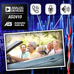 Pour en savoir plus sur l’émetteur-récepteur AD2410 et la technologie A2B : www.analog.com/AD2410