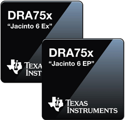 Les processeurs DRA75x « Jacinto 6 EP » et « Jacinto 6 Ex » sont actuellement en phase d’échantillonnage et seront produits au 4e trimestre 2014. Ces deux processeurs DRA75x s’adressent aux constructeurs automobiles et ne sont pas disponibles auprès des distributeurs.