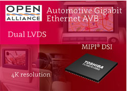 Ce nouveau circuit compagnon supporte la toute dernière norme automobile Ethernet Gigabit AVB destinée à un large éventail d’applications, comme les caméras de vision périphérique avant, arrière et latérale ; l’audio numérique ; et le transfert de vidéo haute résolution à l’écran principal et aux systèmes d’info-divertissement aux places arrières. Le TC358791XBG peut également s’interfacer de manière transparente et supporter de nombreux processeurs d’application automobile de pointe, disponibles sur le marché, grâce à sa connectivité USB 3.0, et aussi MIPI® CSI2 et DSI, pour l’audio et la vidéo, et devrait prochainement recevoir l’agrément AEC-Q100 (Niveau 3) de l’AEC (Automotive Electronics Council, ou Conseil de l’électronique automobile). Le TC358791XBG permettra d’accélérer sensiblement le lancement commercial, et aussi de réduire les couts de nomenclature, des systèmes d’info-divertissement automobiles.