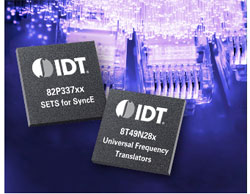 Integrated Device Technology, Inc. (IDT®) (NASDAQ : IDTI) vient d’ajouter de nouvelles solutions SyncE (Ethernet synchrone) à son offre, notamment avec de nouveaux composants SETS (Synchronous Equipment Timing Sources, ou sources de synchronisation pour équipements synchrones), ainsi qu’avec de nouveaux UFT™ (Universal Frequency Translators, ou convertisseurs de fréquence universels). Ensembles ces deux familles supportent la conformité SyncE ITU-T G.8262 au sein d’architectures simple-carte ou multi-cartes, avec des interfaces réseau fonctionnant jusqu’à 100 Gigabits/s.