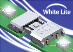 Les applications de bandes DEL sont généralement peu onéreuses, sont constituées de petits panneaux de DEL regroupées sur des cartes de circuit imprimé. Les cartes de circuit imprimé s’enclenchent sur une orientation co-planaire. Les connecteurs White Lite de GCT s’adaptent parfaitement à ces applications notamment grâce à leurs prix raisonnables et leur intégration à des petites cartes de circuit imprimé minces, outre une hauteur de connecteur accouplé de 2,6 mm avec une empreinte accouplée totale de 8,80 mm (largeur) x 11 mm (profondeur).