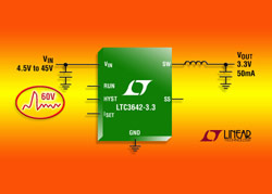 Légende photo : convertisseur abaisseur, synchrone, 45 V, 50 mA, avec un courant de repos de seulement 12 µA.