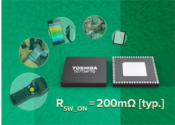 Toshiba Electronics Europe vient d’annoncer un nouveau PMIC (Power Management IC, ou CI de gestion d’énergie) système, pour optimiser la gestion d’énergie d’un large éventail de produits mobiles, tels que smartphones, tablettes, appareils médicaux portables, PDA industriels, lecteurs de codes-barres et autres instruments portatifs. Le PMIC TC7734FTG, est produit à l’aide d’un processus semiconducteur analogique 130 nm, à très faible résistance à l’état passant (la valeur typique de la résistance à l’état passant du trajet FET est de 220 mΩ), et très faible charge de grille, et intègre plusieurs blocs de gestion d’énergie au sein d’un même dispositif.
