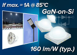 Disponible en neuf variations de couleur, de 2700K à 6500K, la série TL1L4 utilise une technologie de wafers économique "GaN-sur-Si" (Nitrure de Galium sur Silicium), pour produire des LED à consommation et à rendement lumineux optimisés.
