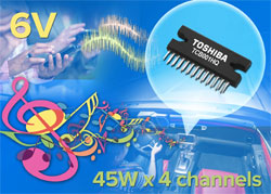 Toshiba Electronics Europe vient de lancer un nouveau CI amplificateur, d’une puissance de 45W par canal, pour applications automobiles. Ce nouvel amplificateur 4 canaux, dénommé TCB001HQ, est conçu pour offrir une tolérance améliorée au bruit, et pour limiter l’effet des interférence lors de l’utilisation d’un téléphone portable à l’intérieur du véhicule.