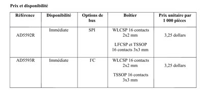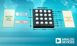 Le circuit intégré monolithique AD5592R permet d’économiser jusqu’à 85 % d’espace par rapport aux configurations discrètes en utilisant un boîtier mesurant seulement de 2x2 mm. Grâce à ce boîtier compact, le circuit intégré convient aux applications haute densité où l’espace disponible est restreint : communications filaires et sans fil, immotique ou toute application de contrôle ou surveillance générique où les dimensions et la flexibilité de conception sont des critères-clés. Le nouveau circuit simplifie des architectures système et autorise une plus grande fonctionnalité au niveau système grâce à la possibilité d’ajouter des capacités de contrôle et de surveillance supplémentaires dans un seul et même composant.