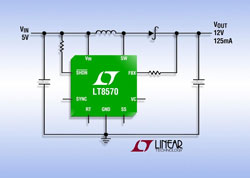 Le LT8570 et le LT8570-1 peuvent être configurés en convertisseur en mode élévateur, SEPIC ou inverseur. Le plus petit commutateur du LT8570-1 permet l’emploi d’une inductance plus réduite dans les applications à faible intensité. Les deux composants fonctionnent avec une fréquence de commutation programmable entre 200kHz et 1,5MHz, ce qui permet aux concepteurs de minimiser la taille des composants externes. La combinaison d’un boîtier DFN, 3mm x 3mm, (ou MSOP-8E) et de petits composants externes conduit à une empreinte très compacte tout en minimisant le coût de la réalisation.