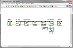 Les fonctions des appareils sont encapsulées de manière particulièrement conviviale, de sorte que huit VI (blocs de fonction) suffisent à acquérir les données de plusieurs appareils et voies. Cette convivialité permet aussi aux utilisateurs ayant des notions de programmation d’obtenir rapidement les résultats de mesure souhaités. Des blocs de fonction avec des interfaces utilisateur complètes permettant le scan d’appareils et la sélection de voies rendent ce logiciel très convivial.
