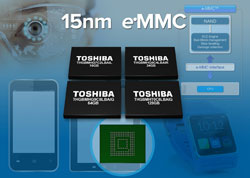 Toshiba Electronics Europe a annoncé le lancement de produits à mémoire flash NAND embarquée, conformes JEDEC e•MMC™ version 5.1, dotés de fonctionnalités "command queueing" (stockage des commandes en file d’attente) et "secure write protection" (protection d’écriture sécurisée). Ces nouveaux produits intègrent des puces NAND en technologie 15 nm, avec un contrôleur intégré gérant plusieurs fonctions de base d’applications NAND, au sein d’un boîtier unique. Ces dispositifs sont conçus pour servir dans un large éventail de produits numériques grand-public, comme des smartphones, des tablettes ou des appareils portables. Des échantillons de produits 16 Go (THGBMHG7C2LBAIL) et 64 Go (THGBMHG9C8LBAIG) sont livrables dès maintenant, et des produits 32 Go (THGBMHG8C4LBAIR) et 128 Go (THGBMHT0C8LBAIG) vont suivre.