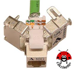Le COCCINELLE® 10G, JACK KEYSTONE CAT 6A FTP de la GAMME PLATINE RESEAUX®, a été spécialement développé par SOCAMONT CABLES® pour répondre à 4 impératifs :