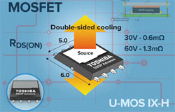 Comprenant un dispositif 30V et un dispositif 60V, ces nouveaux MOSFET canal-N sont basés sur le processeur semiconducteur à tranchée U-MOS IX-H de nouvelle génération. Ce processus est conçu pour offrir le meilleur rendement dans sa catégorie sur un large éventail de charges en abaissant la résistance à l’état passant (RDS(ON)), et en améliorant le rendement de commutation grâce à une réduction de la charge en sortie (QOSS).