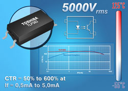 Toshiba Electronics Europe étend sa gamme de photocoupleurs avec l’ajout du photocoupleur TLP383 qui garantit un rapport CTR (Current Transfer Ratio, ou rapport de transfert de courant) constant sur toute une plage de courant d’entrée de 0.2 mA à 8 mA [50 à 600% à IF = 0.2 mA / 8 mA, VCE = 5V] et une plage de températures de 25°C à 100°C.