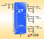 Un régulateur à découpage, abaisseur, synchrone, monolithique, trois sorties, de haut rendement, pouvant accepter 42V en entrée...