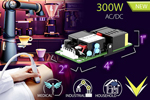 Une alimentation haute densité de 300 W 4”x2” avec profil bas de 1”, médicale (2 MOPP) BF-Rating et approbations ITE...