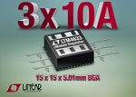 Régulateur µModule, trois sorties 10A, générant un courant en sortie à une température ambiante de plus de 50°C, sans flux d’air ni radiateur externe
